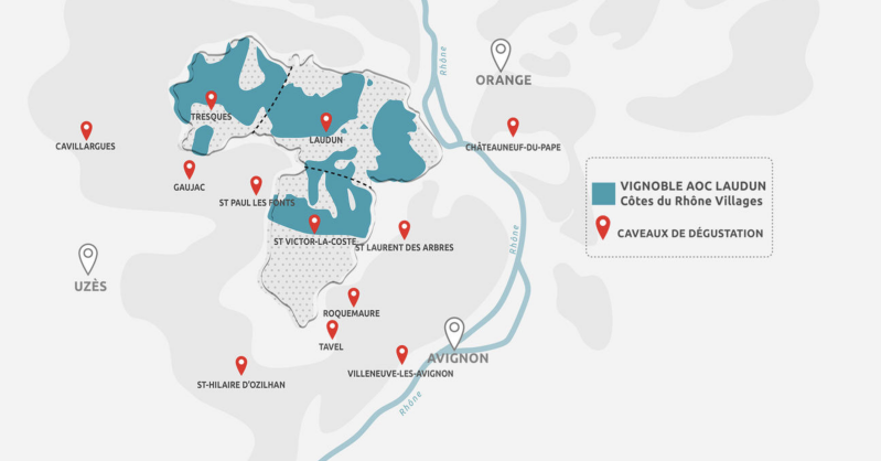 In de wijnwereld gebruikt men het Franse woord terroir voor alles wat een wijn zijn karakter geeft: de bodem, het klimaat, de ligging, de helling van de wijngaard. Het terroir van Laudun is, zelfs voor de al boeiende zuidelijke Rhône, ronduit bijzonder.