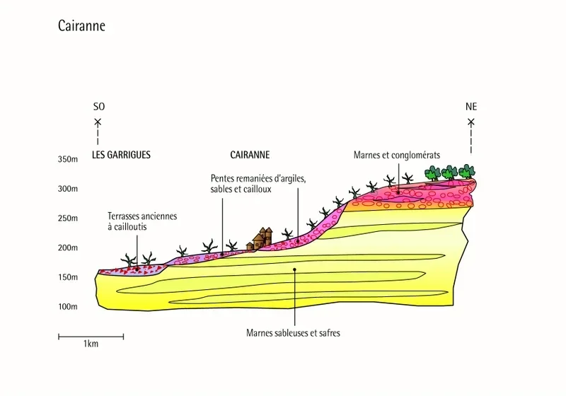 Cairanne wordt gekenmerkt door drie belangrijke geologische formaties: