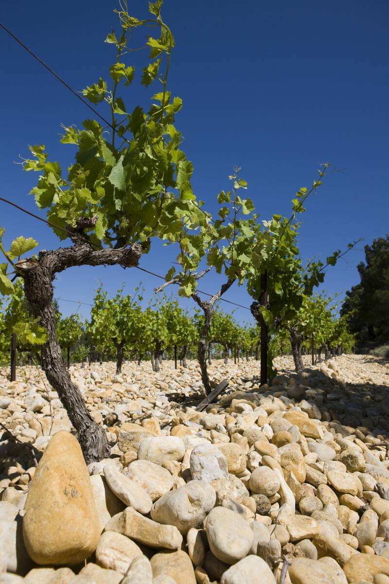 - Gobelet-snoei: deze traditionele snoeimethode, vooral gebruikt voor Grenache, zorgt voor een natuurlijke bescherming tegen de felle zon en de mistral. Thermografische studies hebben aangetoond dat de druiventrossen in gobelet- gesnoeide wijnstokken gemiddeld 2°C koeler blijven tijdens hete zomerdagen.