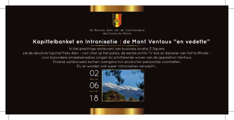 Op zaterdag 2 juni 2018 gaat ons 13de kapittelbanket door in 3Sqare, Rijvisschestraat 124 in 9052 Zwijnaarde/Gent. Het wordt weer een bijzondere avond, waarbij de charme van de verfijnde lentekeuken aan de rijke vinologische variëteit van AOP Ventoux.